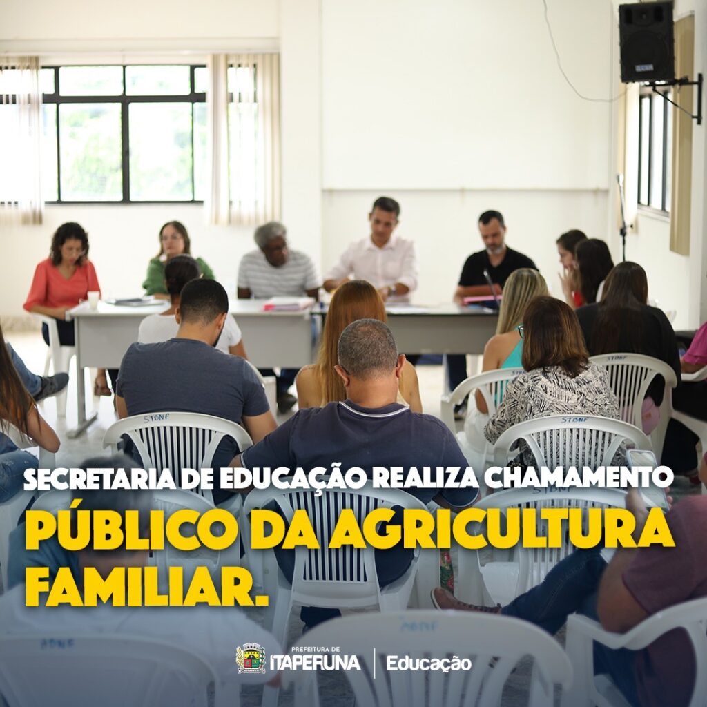 de abril, no auditório da Secretaria de Educação, o chamamento público da Agricultura Familiar. O encontro teve como objetivo selecionar fornecedores locais de alimentos para as escolas municipais.