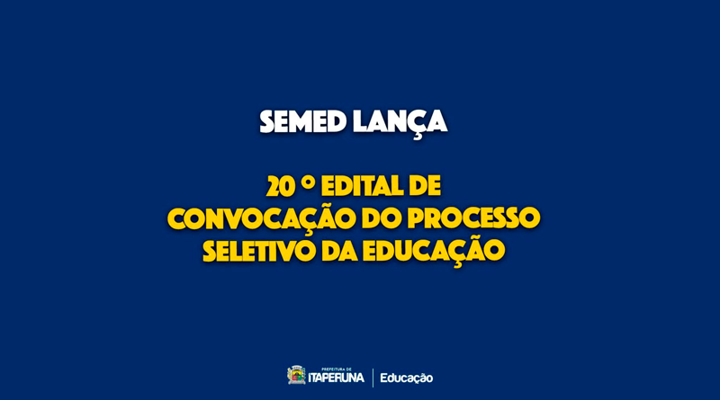 A Secretaria Municipal de Educação lançou o 20º edital de convocação dos aprovados no processo seletivo simplificado para prestadores de serviços.