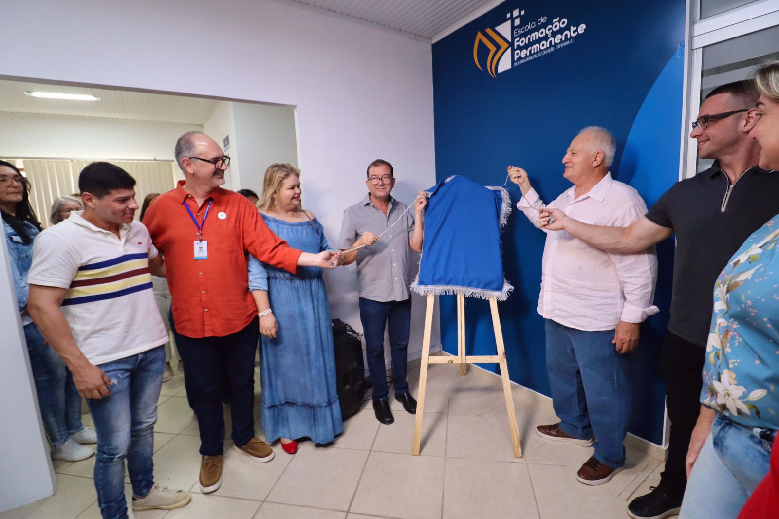 Ao final da cerimônia, os presentes foram convidados para o momento simbólico da inauguração da placa, marcando oficialmente a abertura da sede da Escola de Formação Permanente.